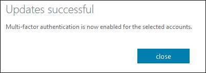 Una vez que haya hecho clic en "Habilitar autenticación multifactor", verá un mensaje de éxito, que puede cerrar.