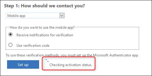 En este punto, aparecerá un panel que le indicará que instale la aplicación Microsoft Authenticator en su teléfono y luego escanee un código QR o, si no puede escanear el código QR, ingrese un código y una URL en su lugar. Una vez que haya hecho esto, haga clic en "Siguiente" para volver a la ventana Verificación de seguridad adicional, que mostrará que se está comprobando el estado de activación.