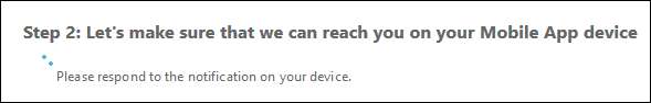 Haga clic en Siguiente y Office 365 comprobará que todo funciona. Dependiendo de la opción que seleccionó para la verificación, enviará un mensaje de Denegación o Aprobación a su aplicación, o le pedirá que ingrese un código de la aplicación. En este ejemplo, envió un mensaje de Denegación o Aprobación y está esperando una respuesta.