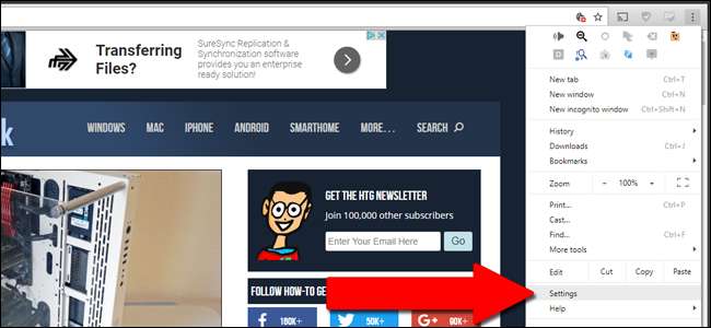 Para eliminar cookies específicas (y evitar eliminar las otras cookies que permiten que funcionen cosas como sus inicios de sesión "recordados"), tendrá que sumergirse en el menú de configuración de Chrome. Haga clic en el botón de menú, los tres puntos en la esquina superior derecha de la ventana del navegador y luego en "Configuración".