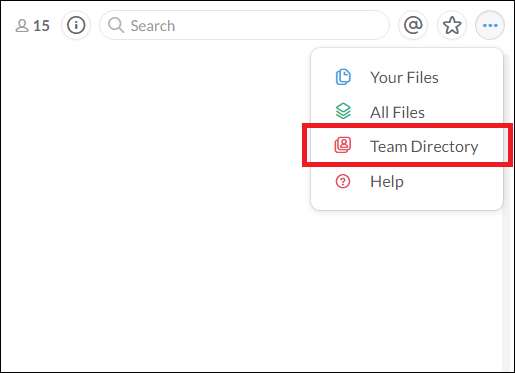 Cualquier usuario o perfil que se haya agregado a sus chats durante el transcurso de su membresía de Slack se puede administrar como parte del Directorio de equipo, seleccionado en el menú superior derecho, que se muestra a continuación: