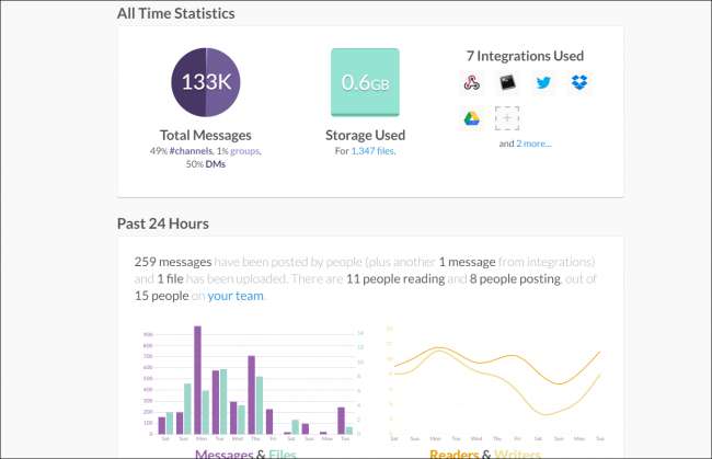 Aquí también puede obtener una descripción general de las estadísticas que publica su canal de Slack en una semana, día o mes determinados, y comparar o contrastar qué tan activo es un miembro con respecto a otro en función de métricas como la frecuencia de publicación, el espacio de almacenamiento utilizado, y participación general en colaboraciones en equipo.