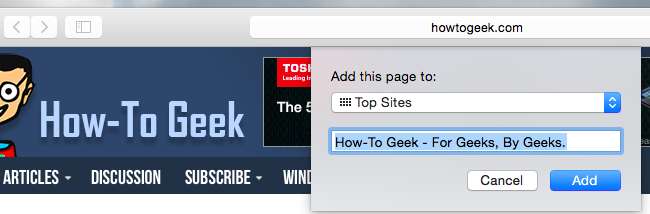 Para agregar manualmente un sitio web a su lista de sitios principales, visítelo, haga clic en el botón compartir en la barra de herramientas de Safari, seleccione "Agregar marcadores" y dígale a Safari que agregue la página a "Sitios principales".