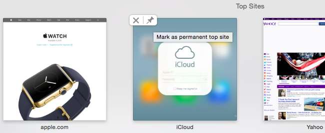 El navegador web Safari en Mac OS X tiene una característica similar. Se abrirá en una vista de "Sitios principales" con vistas previas en miniatura de los sitios web que visita con frecuencia cuando inicie Safari o abra una nueva pestaña.