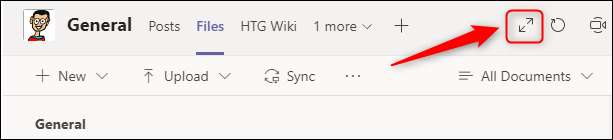 Para alternar la barra lateral, abra una pestaña en un canal de equipos y haga clic en las dos flechas diagonales encontradas a la derecha de las pestañas.
