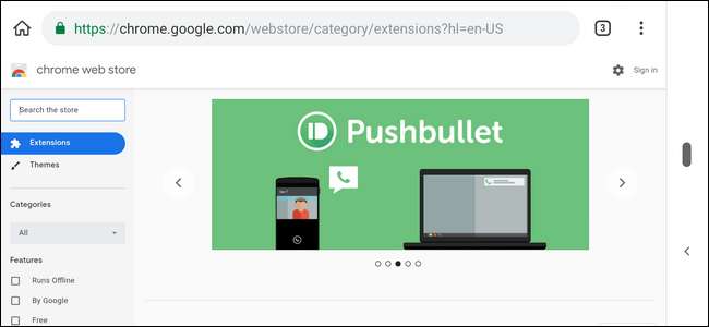 Si ya sabe lo que desea instalar, salte el Tienda virtual de Chrome Para empezar. Dado que Web Store no tiene una página optimizada para dispositivos móviles, deberá pellizcar y acercar la página para obtener la mejor experiencia. (Eso es a menos que seas uno de esos masivo telefónico personas, en cuyo caso es posible que pueda volar por la Web Store con poco o ningún zoom. Bien por usted.)