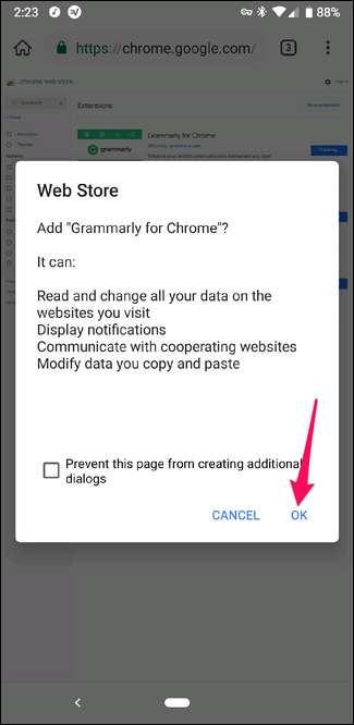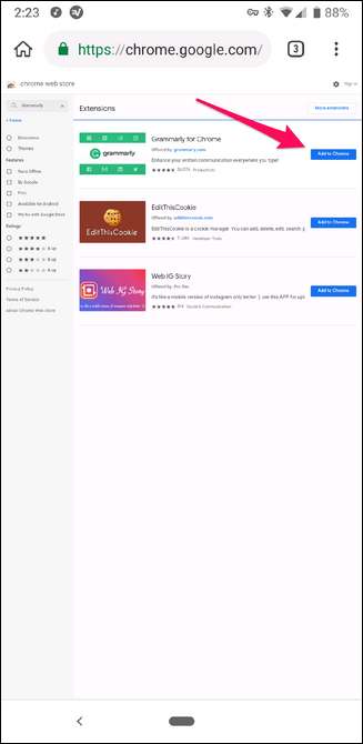 Una vez que haya seleccionado una extensión, esta se instala como en el escritorio: toque el botón "Agregar a Chrome".