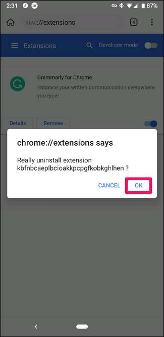 Aparecerá un cuadro de diálogo de confirmación, así que acéptelo para terminar de eliminar la extensión. Pan comido.