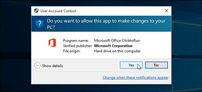 A Control de cuentas del usuario Es posible que aparezca el cuadro pidiéndole permiso para instalar la aplicación. Haga clic en "Sí" para continuar con la instalación de Office 2013.