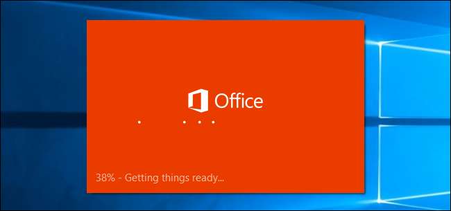 Aparece un banner mientras Office está "Preparando las cosas ...".