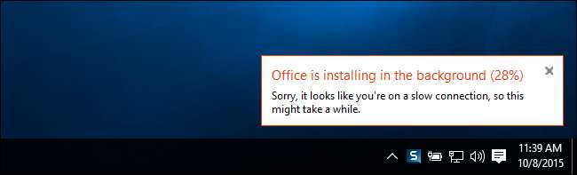 A continuación, Office 2013 se instala en segundo plano y puede tardar un poco, según la velocidad de su conexión a Internet.