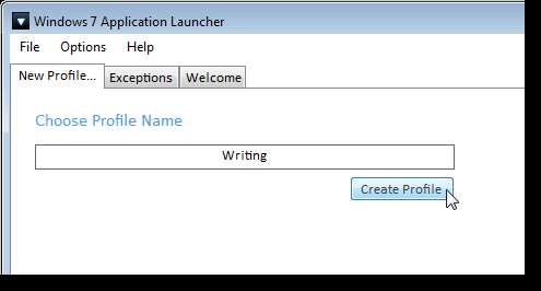 Para crear un nuevo perfil, haga clic en la pestaña Nuevo perfil. Ingrese un nombre para el perfil en el cuadro de edición y haga clic en Crear perfil.