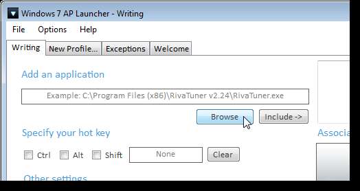 Se crea una nueva pestaña con el nombre del perfil. Para agregar una aplicación al perfil, haga clic en Examinar.