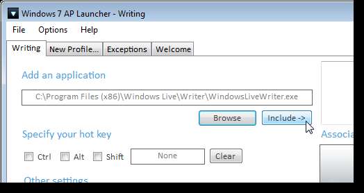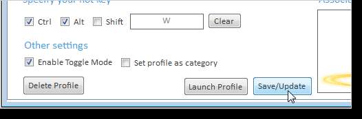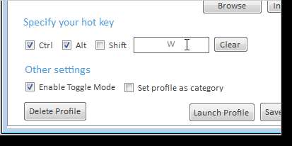 En la sección Especifique su tecla de acceso rápido, elija una combinación de teclas para que el perfil inicie todas las aplicaciones a la vez. Seleccione Ctrl, Alt y / o Shift y haga clic en el cuadro de edición para ingresar una letra para presionar.
