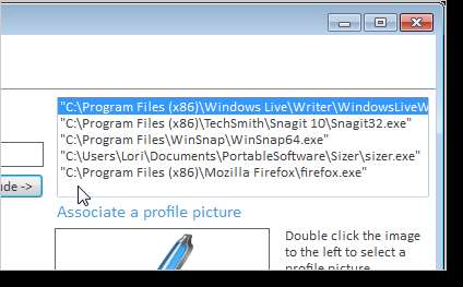 La aplicación se agrega al cuadro de lista en el lado derecho de la ventana de 7APL. El icono de la primera aplicación que agregue al perfil se convierte en el icono del perfil. Para cambiar esto, haga doble clic en la imagen debajo de Asociar una imagen de perfil o arrastre una imagen al área que contiene la imagen actual.