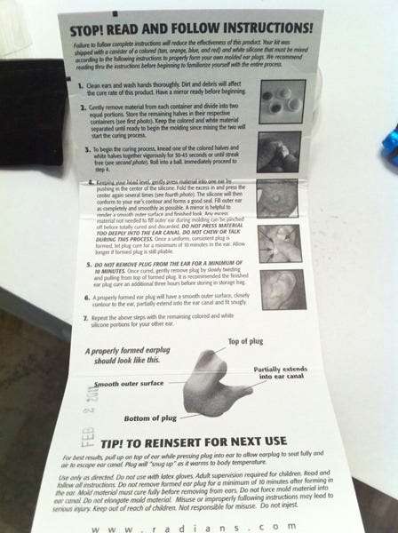 La masilla de silicona es excelente y es fácil de conseguir. Obviamente, queremos el tipo seguro para el cuerpo / alimentos y, afortunadamente para nosotros, hay muchos kits de tapones para los oídos de bricolaje. Después de buscar un poco, me decidí por la marca Radian, porque se encontraba a un precio económico en eBay ($ 14) y recibió buenas críticas en muchos lugares. Como no estaba seguro de cómo sería el proceso, también compré un par de auriculares Skullcandy baratos, así que en caso de que hubiera problemas no arruinaría mis Shures.