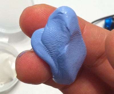 Comenzará estriado, pero a medida que amases, se mezclará en un color sólido. También se calentará a la temperatura corporal, lo que lo hará más cómodo cuando lo inserte.