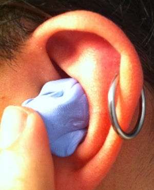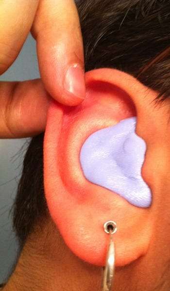 Coloca la masilla en tu oído lenta y cuidadosamente, presionando suave pero firmemente. Dobla el exceso para que encaje bien.