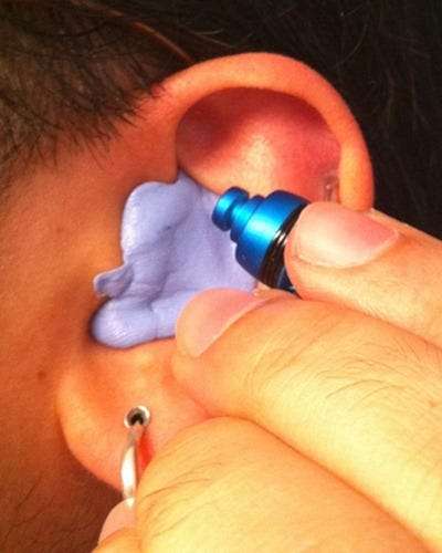 Después de unos 10 minutos, la silicona se habrá endurecido lo suficiente como para que puedas quitar los moldes. HAGA ESTO MUY LENTAMENTE. Querrás agarrarlos y sacarlos muy lentamente de la oreja. Si los quita demasiado rápido, corre el riesgo de que se le reviente el tímpano. Esto no solo es dañino y doloroso, sino que puede correr el riesgo de contraer una infección, así que por favor, tómese su tiempo y hágalo con cuidado.