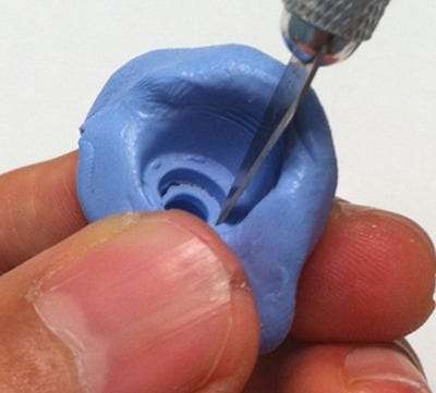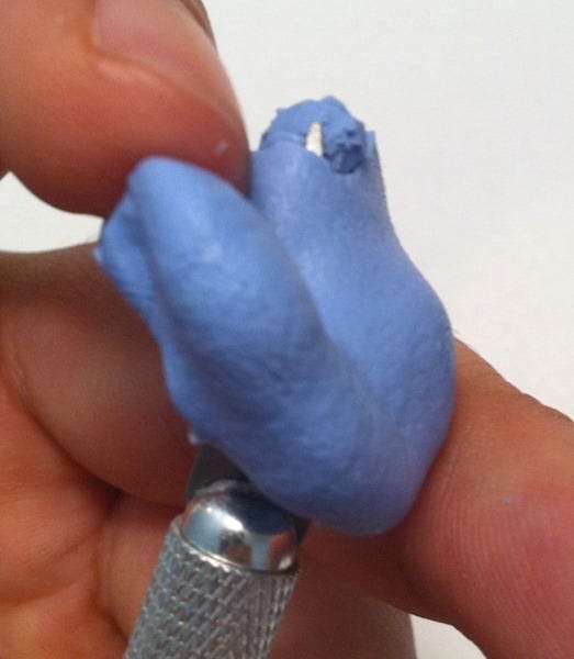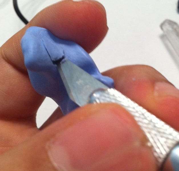 Utilice un cuchillo de hobby afilado y corte en el molde. Intenta hacer un agujero circular para que salga el sonido.