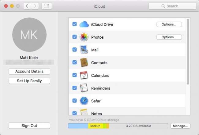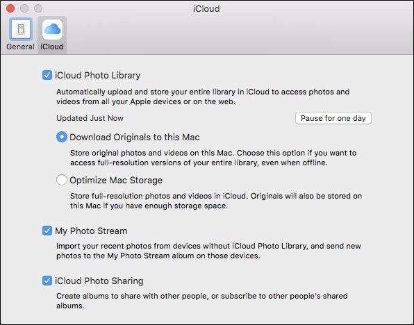 Alternativamente, abra las preferencias del sistema iCloud, luego haga clic en el botón "Opciones ..." de Fotos.