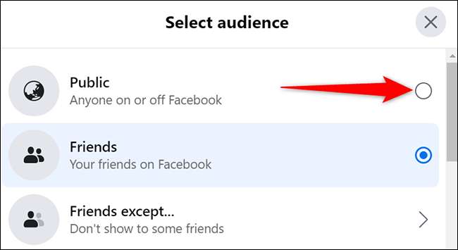 Verá una ventana "Seleccionar audiencia". Aquí, en la parte superior, seleccione "Público".