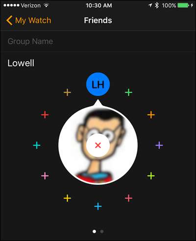 Creamos un segundo grupo etiquetado como "Personal" al que agregamos amigos. Los cambios realizados en sus círculos de amigos en su teléfono se sincronizan automáticamente con su reloj.