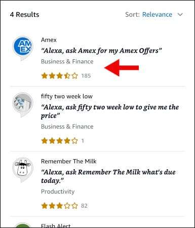 Puede habilitar la habilidad Capital One tocando "Más" en el menú Botón, tocando "Habilidades y amplificadores; Juegos, "y buscando" Capital One ".
