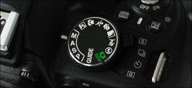 Mire el dial de selección de modo de su cámara; arriba se muestra el dial de selección de modo de una Nikon DSLR. Para maximizar realmente lo que puede hacer con la profundidad de campo, querrá usar A (en algún momento denotado como Ap) para el modo de prioridad de apertura o M para el modo manual.