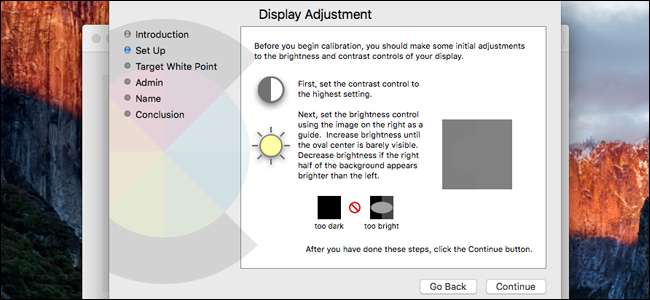 Puede hacer clic en todos los perfiles disponibles y ver cómo se aplican a la pantalla inmediatamente (o coge uno para tu modelo de monitor ). Cuando haya encontrado el que desea, haga clic en "Calibrar". Afortunadamente, macOS tiene un asistente de calibración paso a paso que lo guiará a través de todas las configuraciones aplicables y le permitirá ajustarlas una por una.