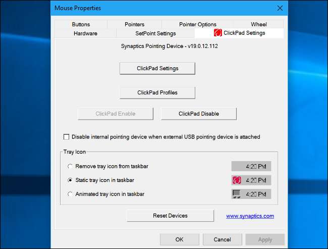 Si esto no funciona, es posible que deba habilitarlo. Hay dos formas principales de hacer esto: está el panel de control personalizado del controlador del panel táctil, que a menudo lo fabrica Synaptics. Esto siempre debería estar disponible en Windows 7, y también está disponible en PC con Windows 10 que no tienen touchpad de precisión .