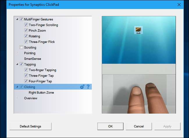 Los siguientes pasos exactos aquí serán diferentes en diferentes PC. Deberá encontrar la opción que controla lo que hace el clic con tres dedos en su panel táctil, asegurarse de que esté habilitado y configurarlo para hacer clic en el medio.