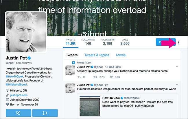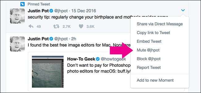 Si se trata de un Tweet en particular que te empuja al límite, toca o haz clic en la flecha que apunta hacia abajo en la parte superior derecha.