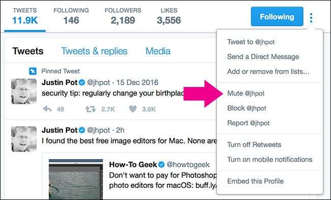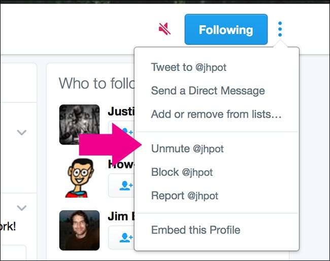 Y una vez más, has terminado. Para dejar de silenciarlos, dirígete a su perfil, haz clic en los tres puntos y haz clic en Dejar de silenciar @nombredeusuario.