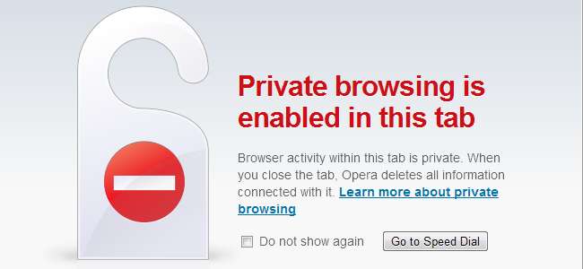 La función de navegación privada de Opera evita que Opera guarde su historial de navegación, cookies y otra información privada localmente. Puede abrir una pestaña en el modo de navegación privada haciendo clic en el menú Opera, señalando Pestañas y Windows y seleccionando Nueva pestaña privada. Desafortunadamente, no puedes configurar Opera para que siempre abra pestañas en este modo.