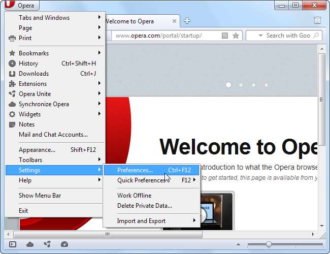 Primero, abra la ventana de Preferencias de Opera en Configuración en el menú de Opera.