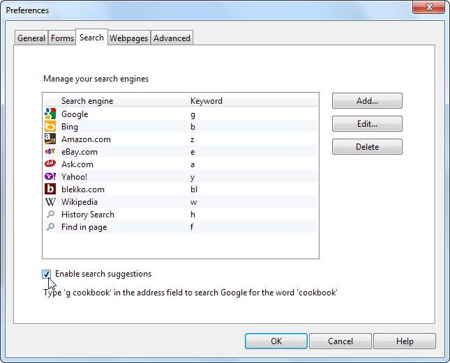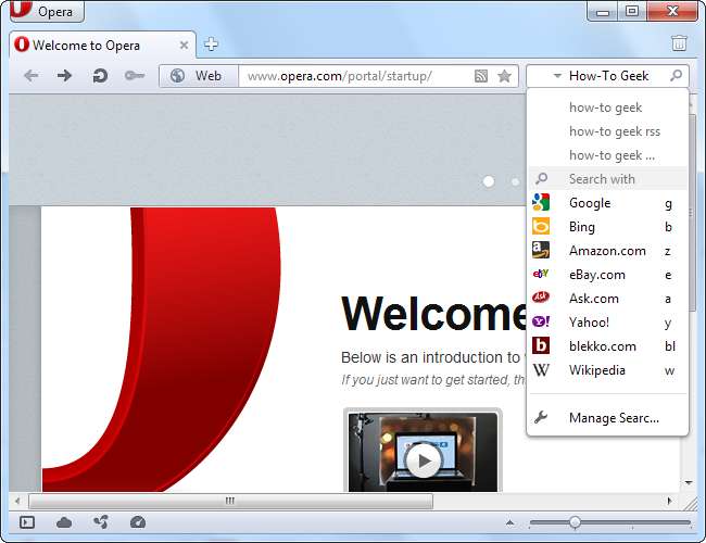 Al igual que otros navegadores, Opera envía cada pulsación de tecla que escribe en el cuadro de búsqueda a su motor de búsqueda predeterminado. El motor de búsqueda responde con sugerencias según lo que está escribiendo.