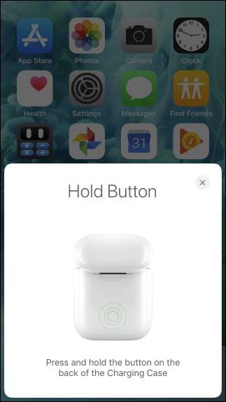 Para hacer esto, primero coloque sus AirPods en su estuche. Dirígete a la pantalla de inicio de tu iPhone, abre la funda de los AirPods y mantenla cerca de tu iPhone. (Este mismo proceso funciona en un iPad, si desea emparejar sus AirPods con un iPad en lugar de un iPhone).