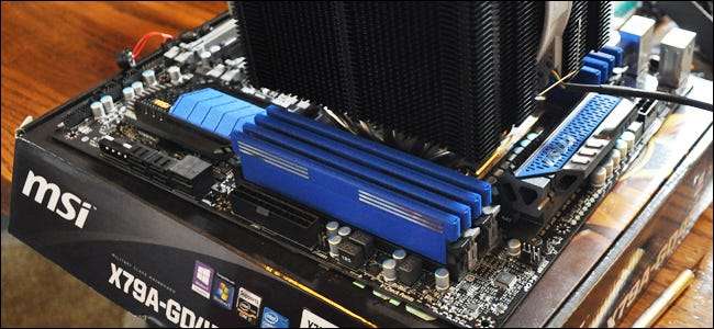En mi caso, tenía una construcción que era principalmente negra y gris, y quería agregarle un poco más de azul. Esto está doblando las reglas solo un poco, pero como el negro y el gris son tonos neutros, terminó bien. Así es como se veían mi placa base, CPU y RAM antes de pintar: