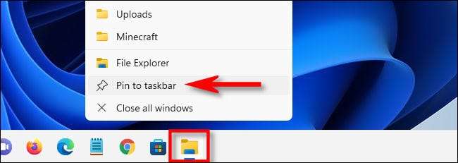 Después de eso, el icono del Explorador de archivos se mantendrá en su barra de tareas, incluso si cierra la ventana del Explorador de archivos. Si lo desea, puede hacer clic y arrastrar el icono en la barra de tareas para reposicionarlo.