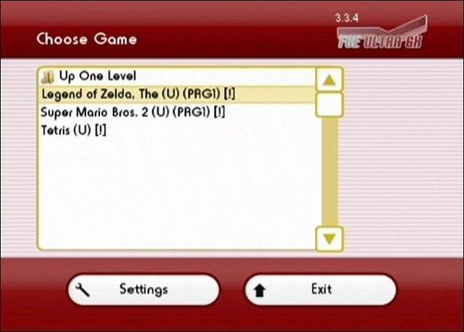 En este punto, podría estar pensando "Hmm, eso se parece sospechosamente a una versión azul del menú rojo FCE Ultra GX con el que estábamos jugando ...". Eso no sería una sospecha infundada. El puerto de Wii de Snex9x no solo es administrado por el mismo tipo que administró el puerto de Wii de FCE Ultra GX, sino que ambos están distribuidos con el mismo icono / biblioteca GUI y diseñados para tener distribuciones de menú casi idénticas para facilitar su uso.