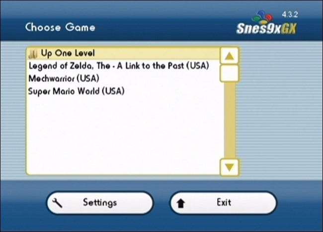 Vaya al menú Homebrew nuevamente y busque Snes9x GX. Haga clic en el acceso directo para iniciar la aplicación.