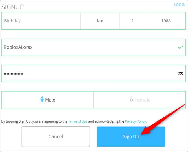 Ingrese su fecha de nacimiento, un nombre de usuario, contraseña y sexo, y luego haga clic en "Registrarse".