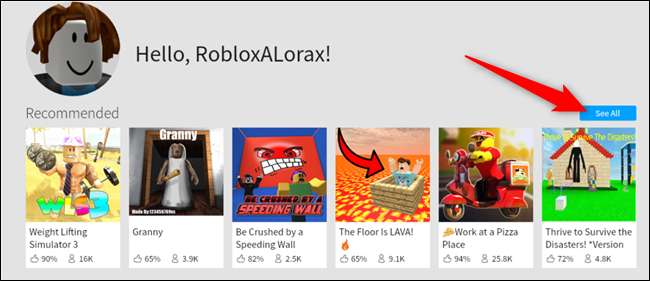 Después de registrarse, verá la página de inicio, donde puede elegir un Obby para comenzar a jugar. Haga clic en "Ver todo" para ver una lista completa de O bbies.