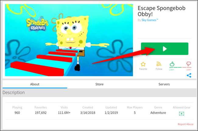 Cuando finalmente se decida por un Obby, haga clic en el botón Reproducir para unirse a un servidor.