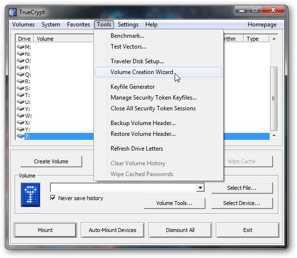 En el menú Herramientas, seleccione Asistente de creación de volumen.
