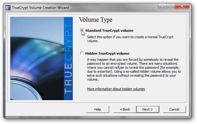 Seleccione la opción para crear un volumen TrueCrypt estándar.