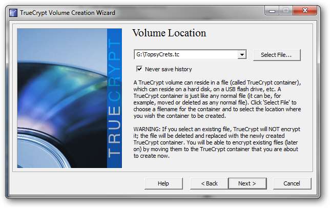 El proceso de creación de un contenedor de archivos cifrados para una unidad flash no es diferente del proceso normal de TrueCrypt. Si ya está familiarizado con cómo hacer esto, puede omitir esta sección o simplemente desplazarse por ella para un repaso rápido.