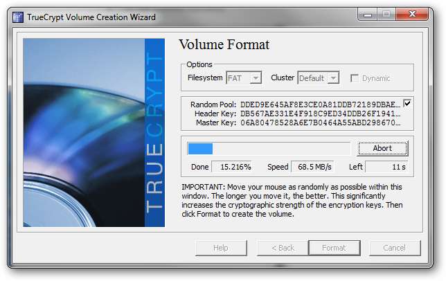 Espere pacientemente mientras se crea el volumen TrueCrypt.
