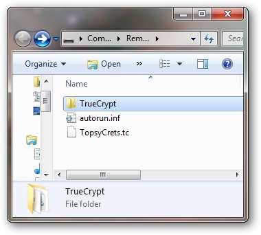 Una vez que haya configurado su unidad flash como un disco TrueCrypt Traveler, abrir el contenido en el Explorador de Windows debería verse como la pantalla a continuación.